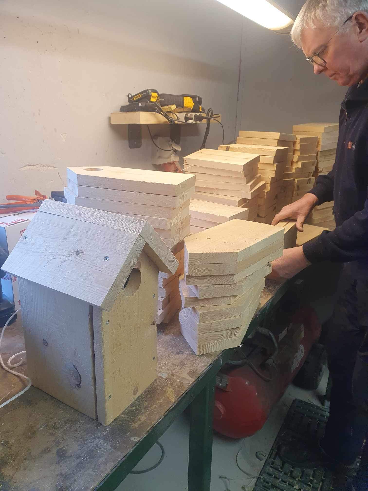 Durup Fonden og Midt Vest Fonden i Jebjerg gav begge et beløb, så vi kunne købe materiale, og Carsten Svenningsen og jeg fik lavet 131 stærekasser.