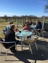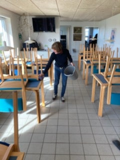 Dagen startede med fælles morgenbord. Derefter blev der arbejdet indtil kl. 13, hvorefter der var frankfurtere og kage på terrassen i Golfcafeen. Tusind tak for hjælpen!