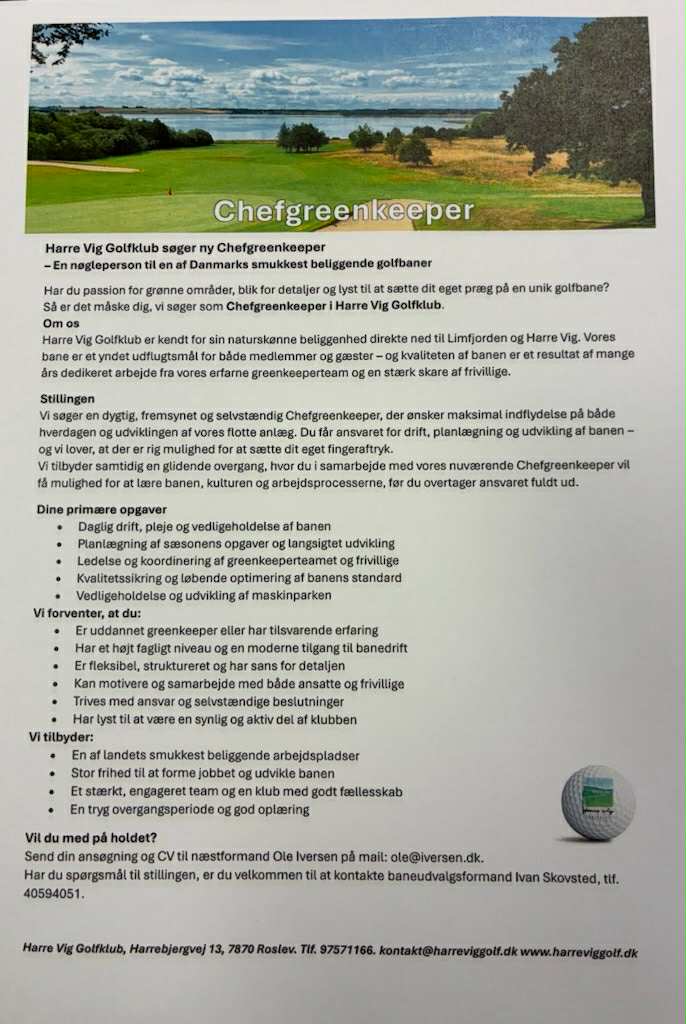 Du er her: Harre Vig Golfklub » Nyheder » Aktuel » Harre Vig Golfklub søger ny Chefgreenkeeper Harre Vig Golfklub søger ny Chefgreenkeeper 4. december 2025 Aktuel Indlægsnavigation Nyhedsbrev november